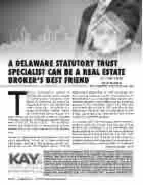 Kay Properties and Investments, LLC is a national Delaware Statutory Trust (DST) investment firm with offices in Los Angeles, San Diego, San Francisco, Seattle, New York City and Washington DC. Kay Properties team members collectively have over 94 years of real estate experience, are licensed in all 50 states, and have participated in over $7 billion of DST real estate. Our clients have the ability to participate in private, exclusively available DST properties as well as those presented to the wider DST marketplace; with the exception of those that fail our due-diligence process. To learn more about Kay Properties please visit: www.kpi1031.com Call: 1-855-899-4597 or email: info@Kpi1031. com