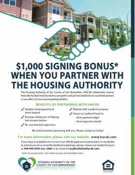 The Housing Authority of the County of San Bernardino (HACSB) administers various federally funded rental assistance programs and private landlords are essential partners in our effort to house participating families.