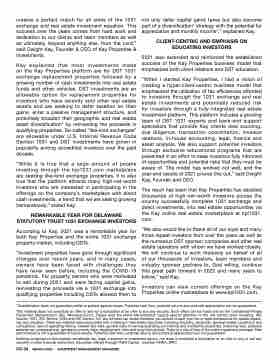 2021 also extended and reinforced the established success of the Kay Properties business model that emphasizes both client relations and DST education.