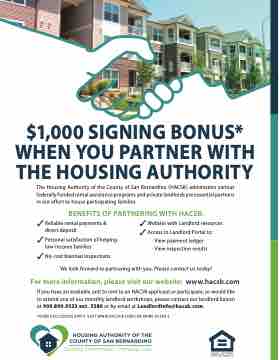 The Housing Authority of the County of San Bernardino (HACSB) administers various federally funded rental assistance programs and private landlords are essential partners in our effort to house participating families.