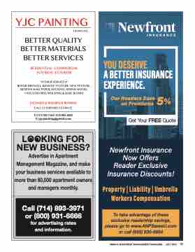 LOOKING FOR NEW BUSINESS? Advertise in Apartment Management Magazine, and make your business services available to more than 80,000 apartment owners and managers monthly.